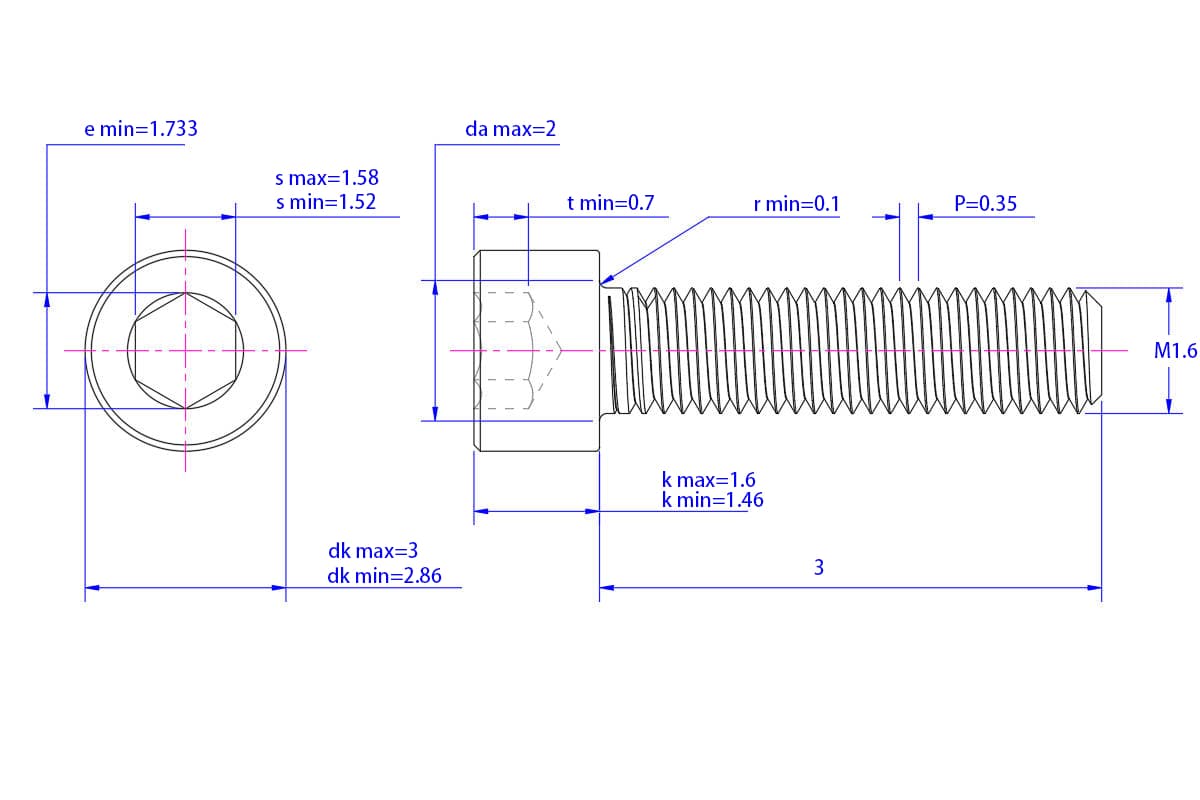 M1.6X3mm – 304 – A2-70 – Stainless steel – Hexagon socket cap screw