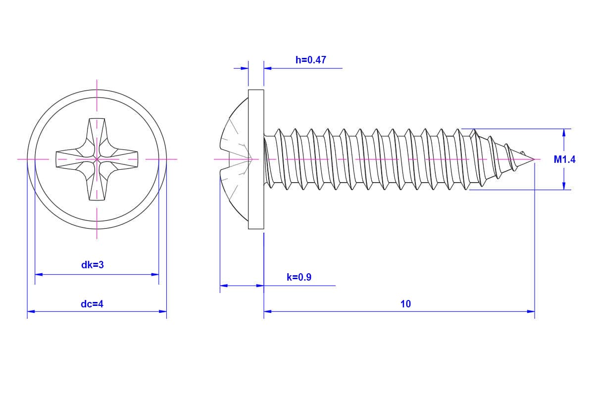 Home Shop Self-tapping screws Cross Pan Head Self-Tapping Screw with Washer 304 - Stainless Steel - Cross Pan Head Self-Tapping Screw with Washer M1.4X10mm – Washer Diameter:4mm – 304 – Stainless Steel – Cross Pan Head Self-Tapping Screw with Washer