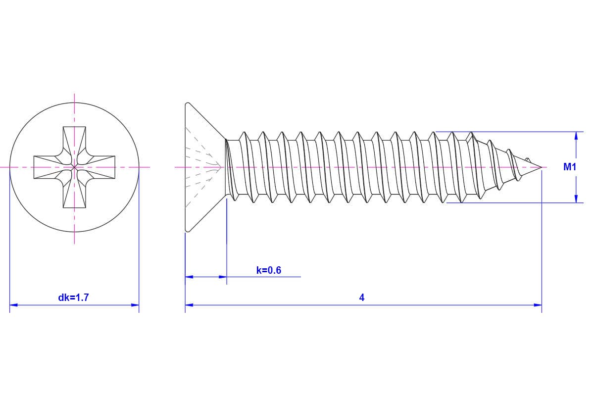 Cross-Recessed-Flat-Head-Self-Tapping-Screw-M1X4