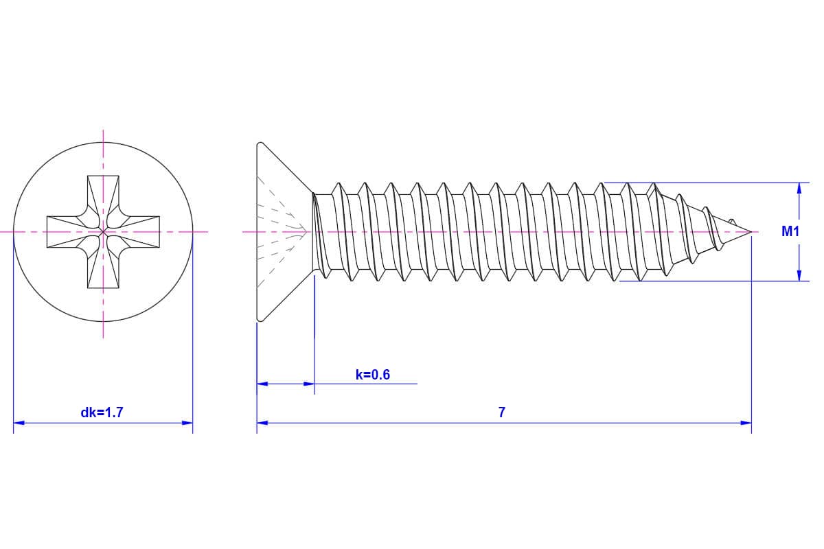 Cross-Recessed-Flat-Head-Self-Tapping-Screw-M1X7