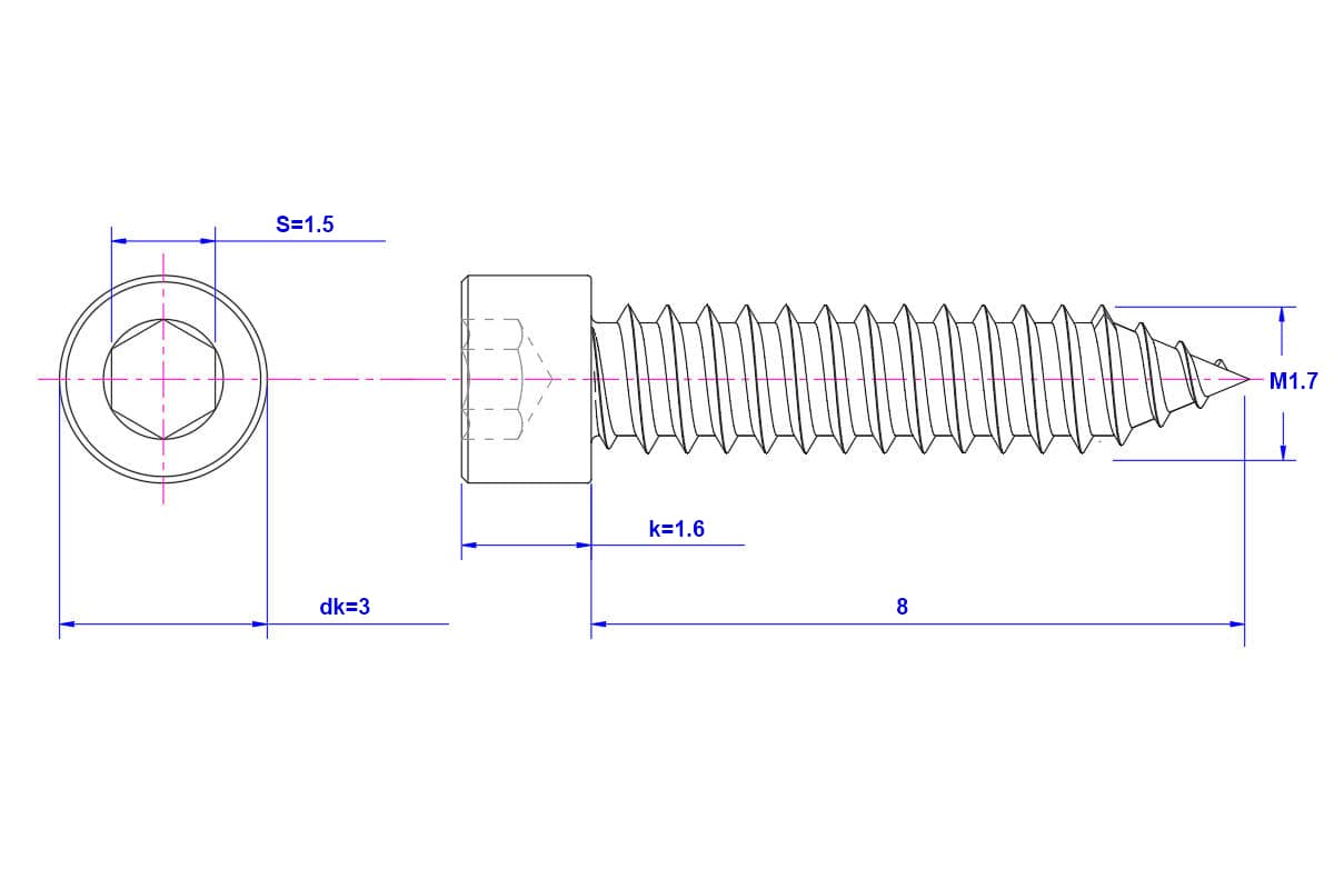 Hexagon-socket-cap-head-Self-Tapping-Screw-M1.7X8